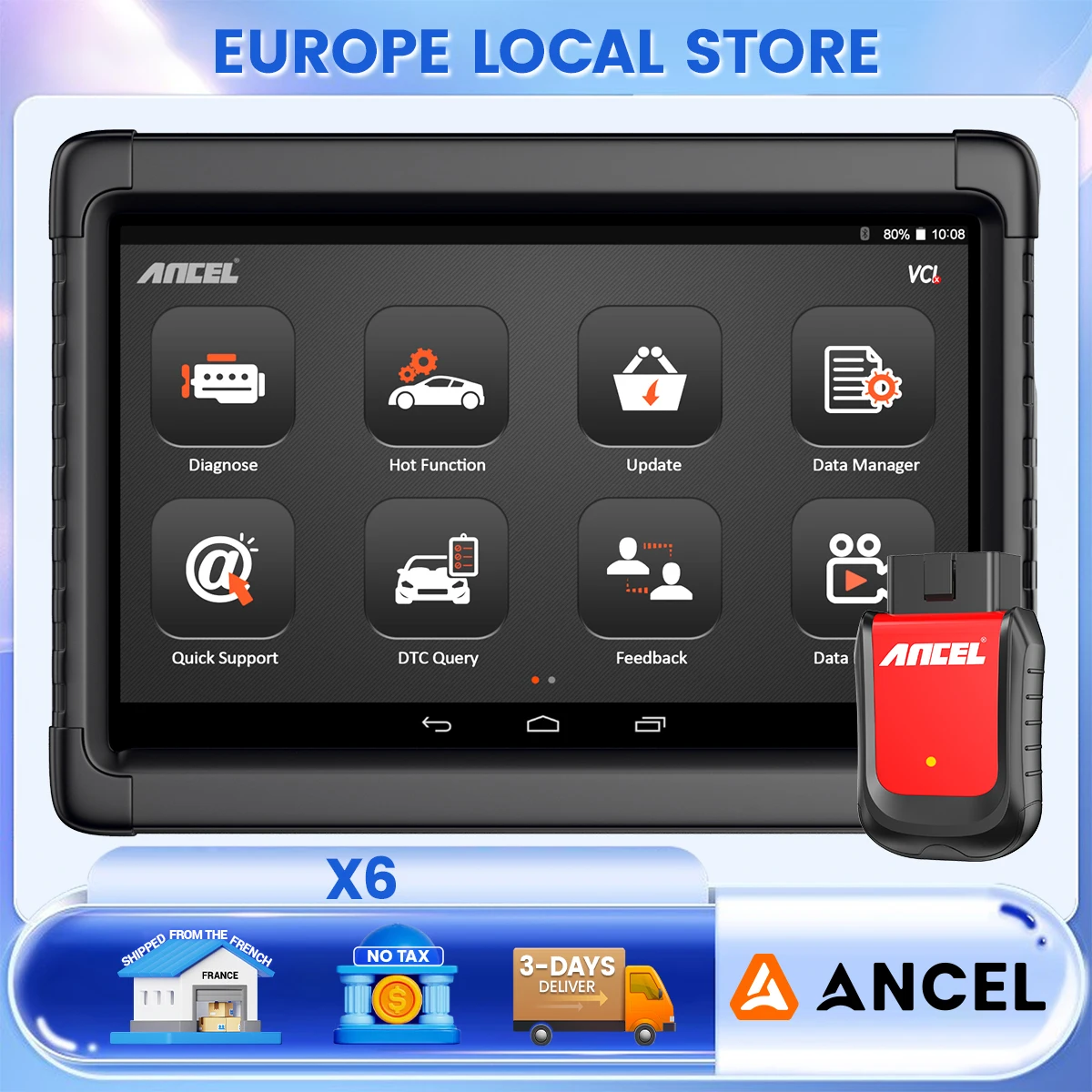 ANCEL X6 Scanner OBD2 da 10.1 Pollici con Controllo Bidirezionale, Strumento Diagnostico per Tutti i Sistemi con 10 Servizi di Reset e 2 Anni di Aggiornamenti Gratuiti