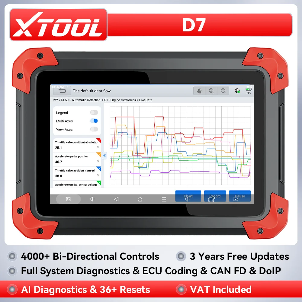 XTOOL D7 Scanner OBD2 bidirezionale con codifica ECU Strumento diagnostico completo per test attivo Scanner per auto con oltre 36 ripristini Programmazione chiave Acceleratore Rilascio Sensore manovella Rinnova CANFD DoIP FCA 3 anni Aggiornamento gratuito