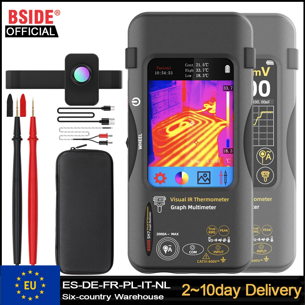 Termocamera 2-IN-1 con Multimetro 20000 BSIDE SH7, Risoluzione 320*240, Schermo Touch da 3,98 Pollici, 15 Palette di Colori, per Riparazione di Circuiti Stampati