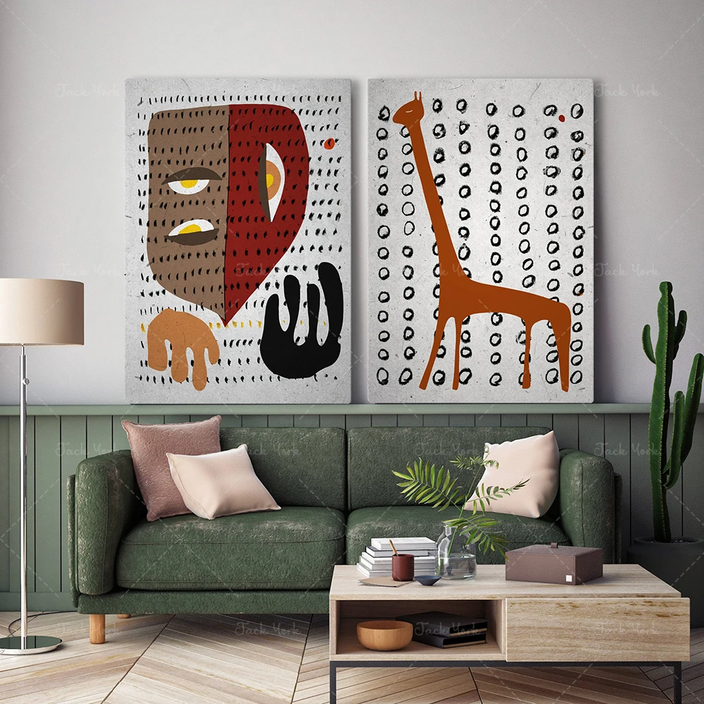 Set etnico con puntini giraffa, arte figurativa afroamericana, motivo a pois afro moderno, decorazioni per la casa Boho, maschera etnica astratta