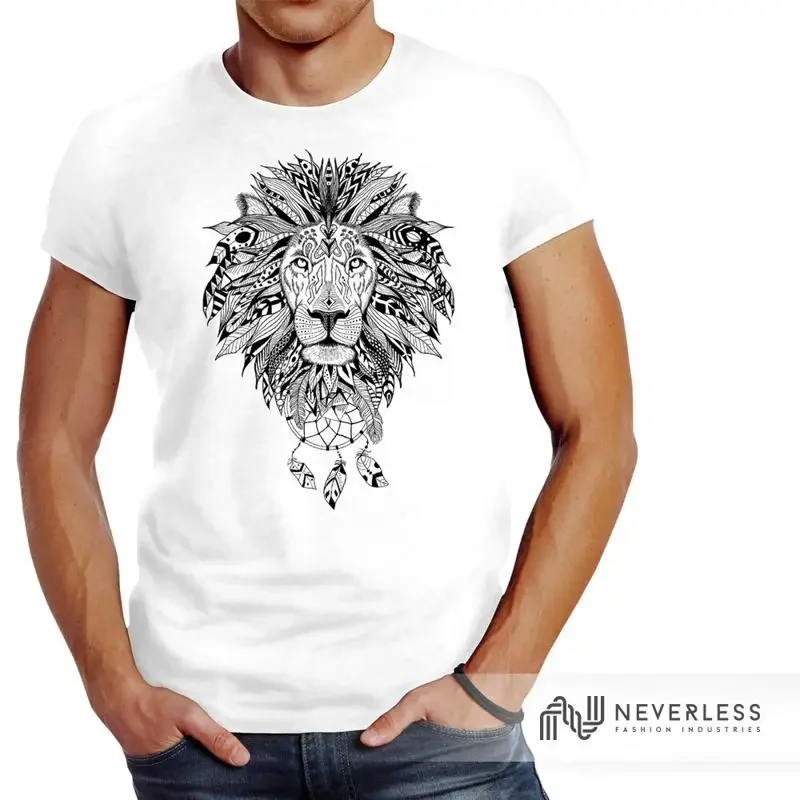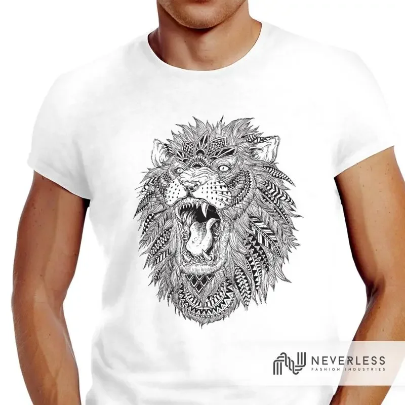 T-shirt da uomo Lion Mandala Atzeken Boho Atzec Piume Ethno Lion Neverless