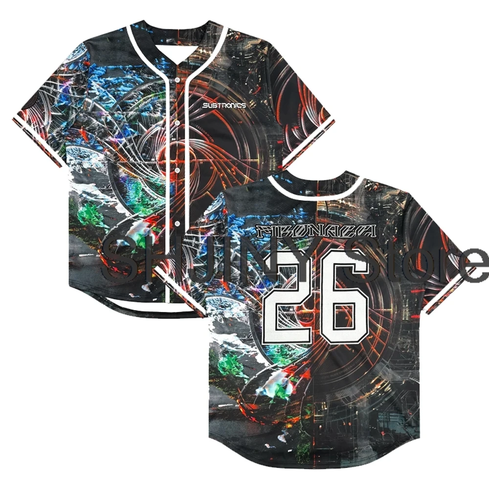 Maglia da Baseball Subtronics Fibonacci Tour 2026 con Scollo a V e Maniche Corte, Camicia con Bottoni per Uomo e Donna, Abbigliamento Streetwear