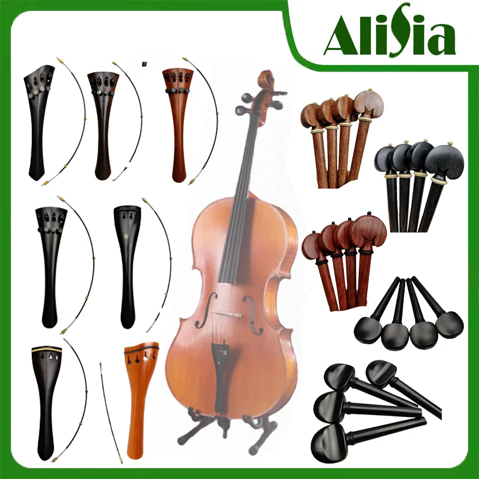 Pioli per cordiera per violoncello in palissandro ebano Nuovo 4/4 Accessori per violoncello Parti per corde Tornitura Peg Accordatore Pezzo di coda con Gut Finetuner