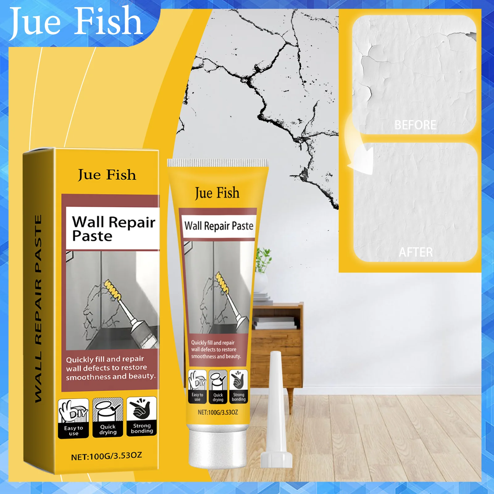 Composto per riparazione crepe da parete Toppa da parete Superficie liscia Resistente allo stampo Riparazione di crepe e scaglie Composto per riparazione vernice in lattice
