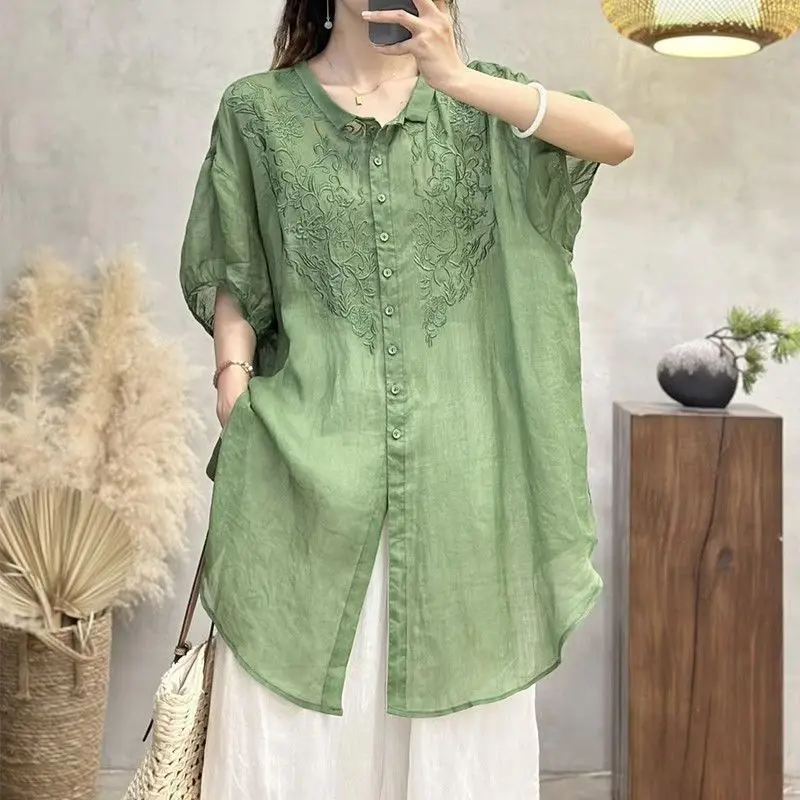 Camicetta bianca retrò francese: camicia oversize da donna con colletto a tacca jacquard floreale, top taglie forti traspirante in stile coreano