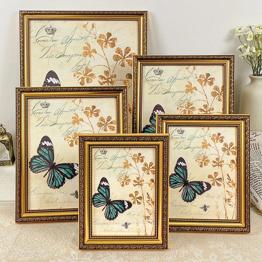 Cornice per foto vintage in oro da appendere alla parete, display da tavolo, poster artistico con copertura in plexiglass resistente, arredamento per la casa e il soggiorno