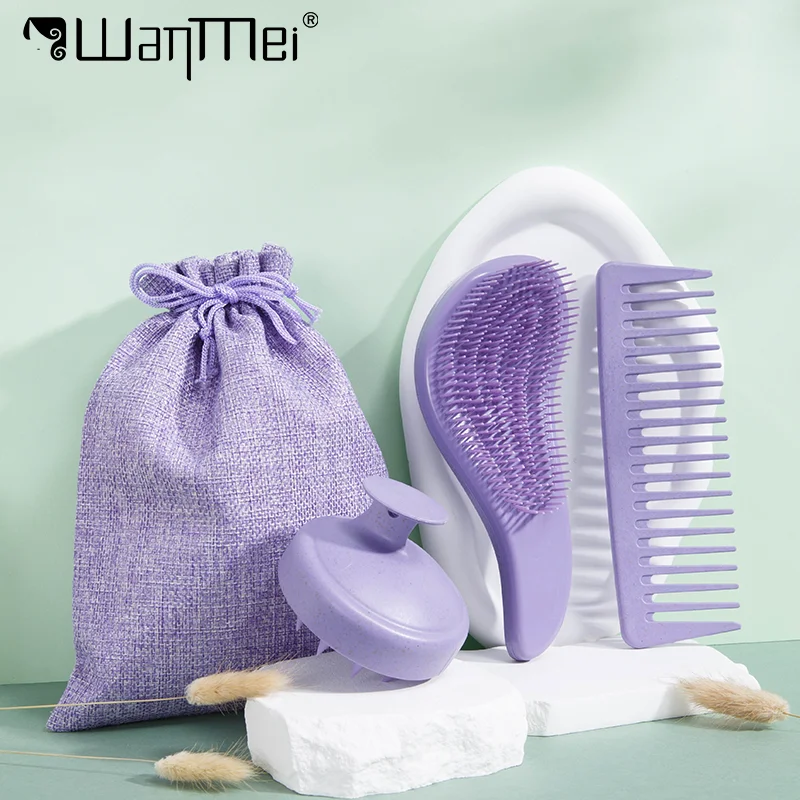 4 pz/set Paglia di Grano Pettine Dei Capelli Set Massaggio Del Cuoio Capelluto Spazzola Per Capelli Shampoo Spazzola di Lavaggio con Denti Larghi Anti-crespo Pettine Strumenti Per Lo Styling