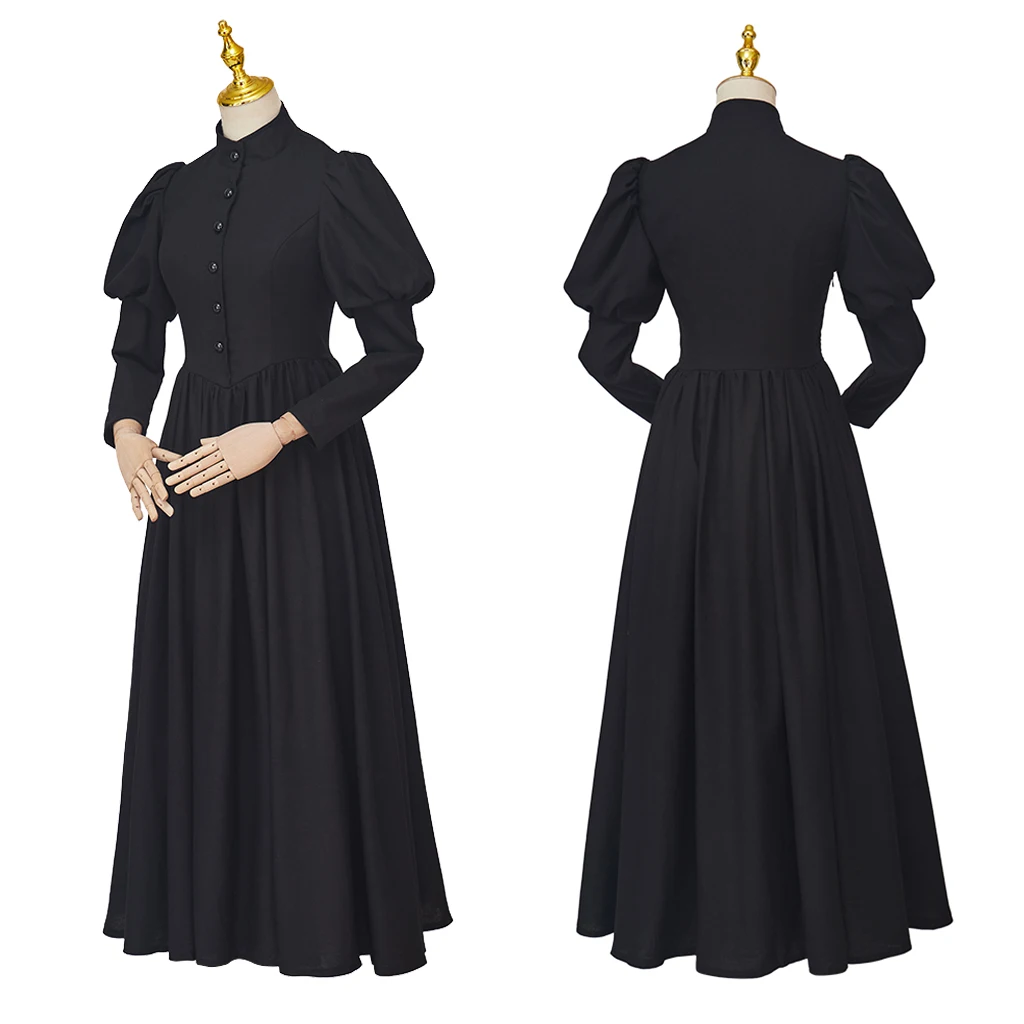 Abito Vittoriano Nero da Lutto, Abito Storico Vittoriano in Lino, Abito Nero con Gonna a Balze, Abito da Ballo Gotico Steampunk della Guerra Civile