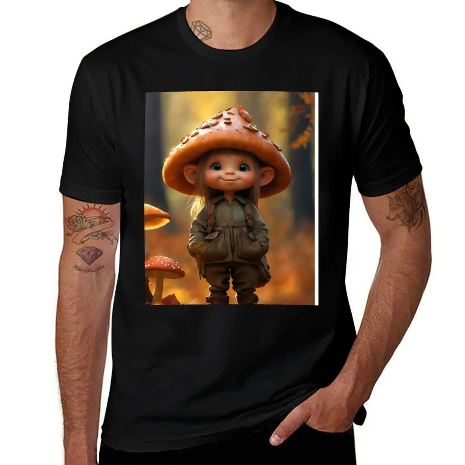 Maglietta estetica con tasca a fungo Magic Cottagecore Botanico Minimalista