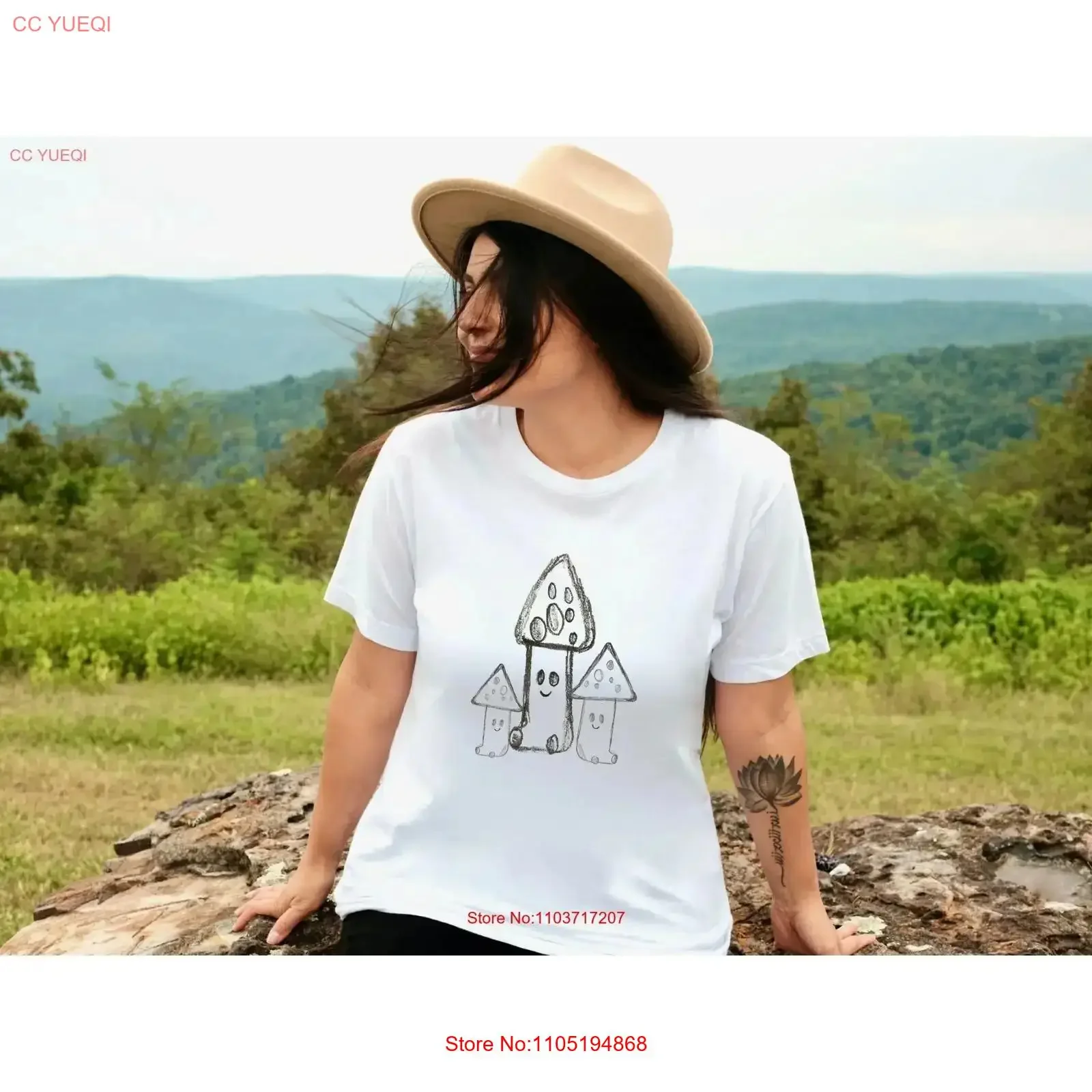 Cottagecore Funghi T Shirt Boho Fungo disegnato a mano Natura carina tee Divertimento vintage lavato Abiti firmati unisex grafica Morbida