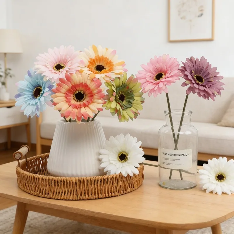 6 Pezzi Fiori Artificiali di Gerbera in Seta per Bouquet da Matrimonio, Decorazione Pastorale per Casa, Tavolo, Hotel, Composizione Floreale Ornamentale