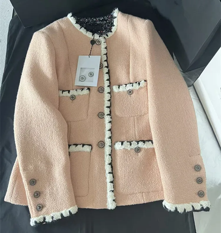 Abbigliamento femminile europeo personalizzabile - Nuovi stili estivi 2026: Completo gonna e cappotto in tweed a maniche lunghe con colletto e chiusura a bottone singolo