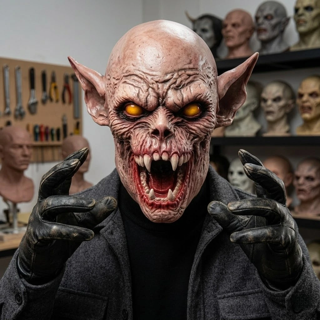 Maschera Terrificante Ghoul con Bocca Aperta, Maschera Horror in Lattice a Testa Intera, Realistica Maschera da Vampiro Demone per Cosplay, Accessori per Costume di Halloween