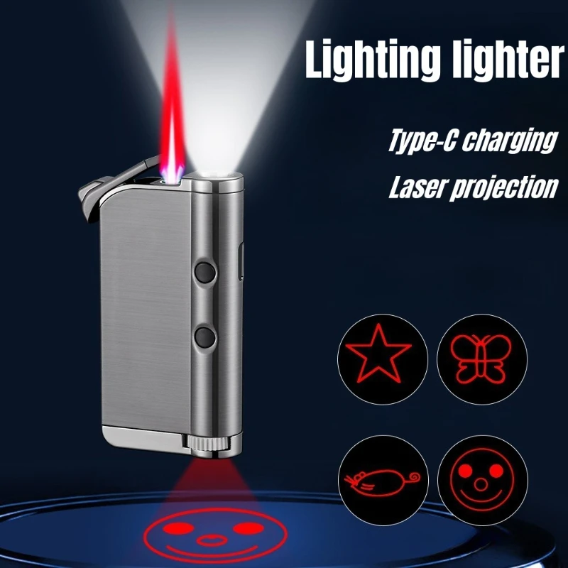 NUOVO accendino a gas a getto multifunzionale in metallo con motivo laser illuminato accendino a turbina portatile antivento per regalo da uomo