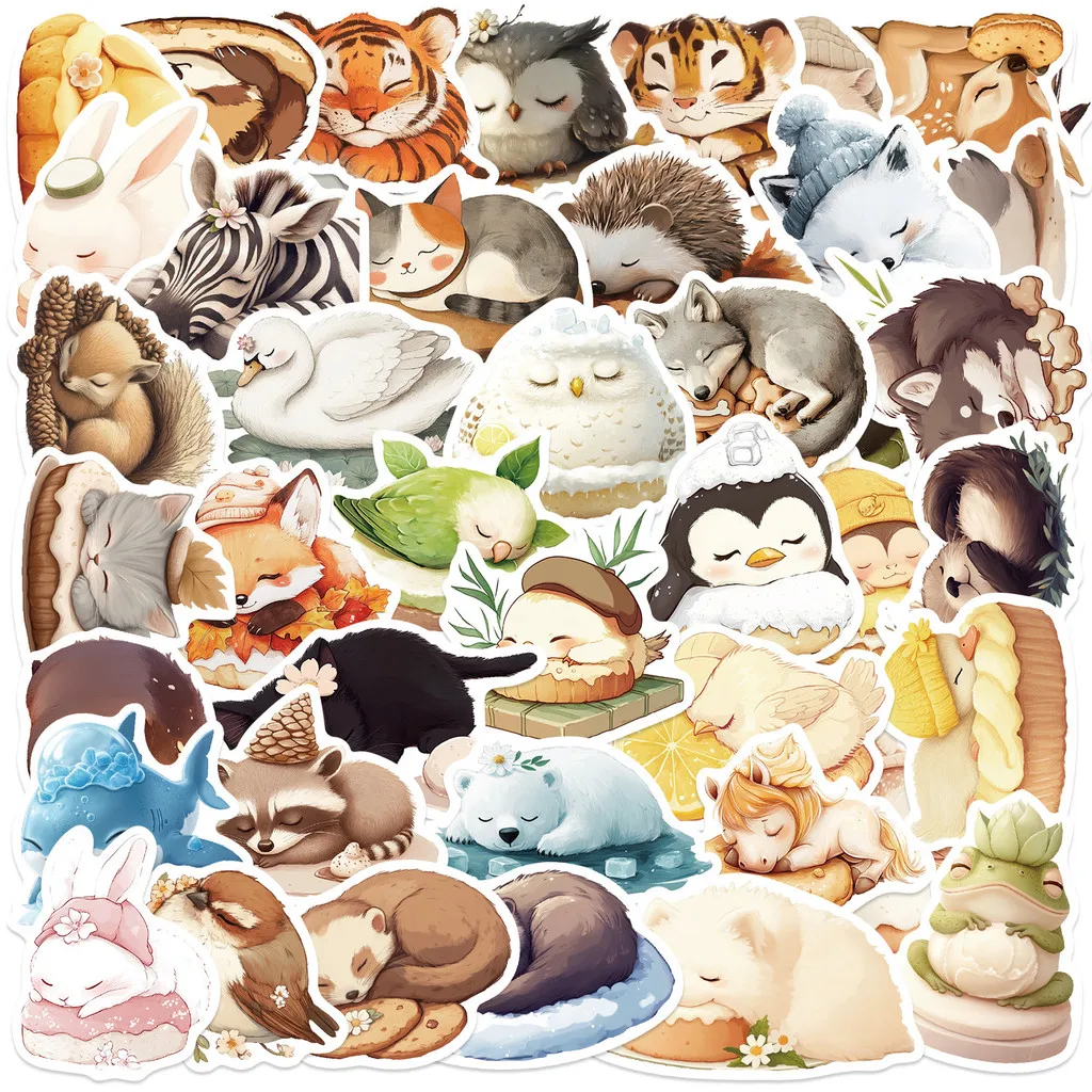 50 adesivi serie simpatici animali addormentati - decalcomanie in PVC impermeabili non infrangibili per custodie per telefoni fai da te LanLanStickersWorld