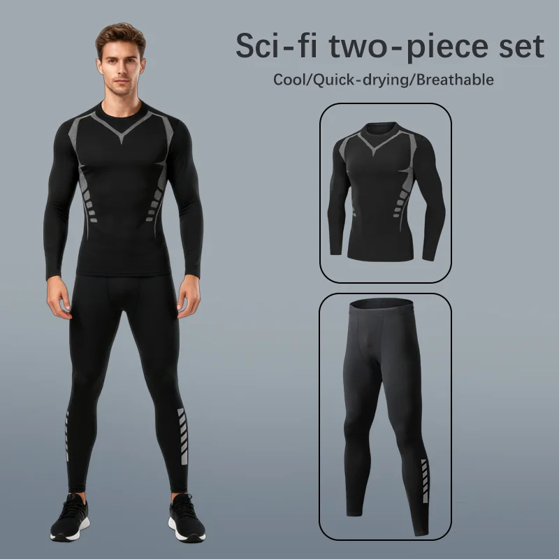 Completo Sportivo da Uomo a Compressione Aderente in Seta Ghiaccio, Tuta da Corsa a Maniche Lunghe per Fitness e Allenamento, Outfit Trendy per Jogging Mattutino