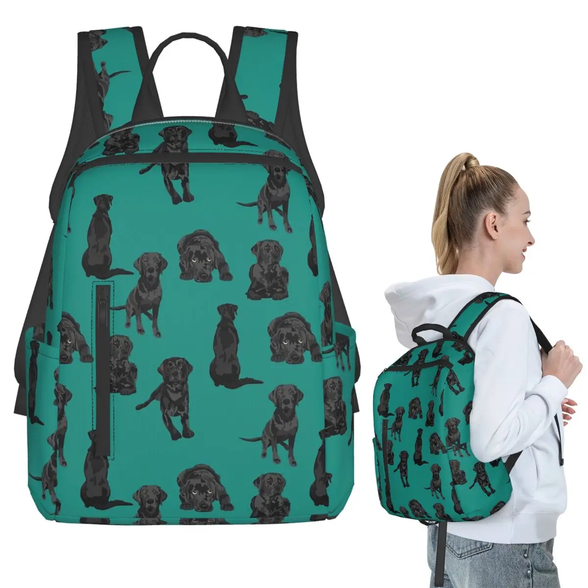 Zaino per cani Labrador Retriever nero, borsa per libri per studenti, borsa per la scuola per bambini, borse a tracolla per laptop, uomo donna