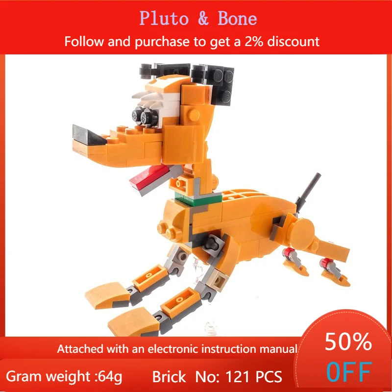121 pezzi Plutone e osso MOC con cucciolo giallo, osso masticato e coda scodinzolante regalo di blocchi educativi