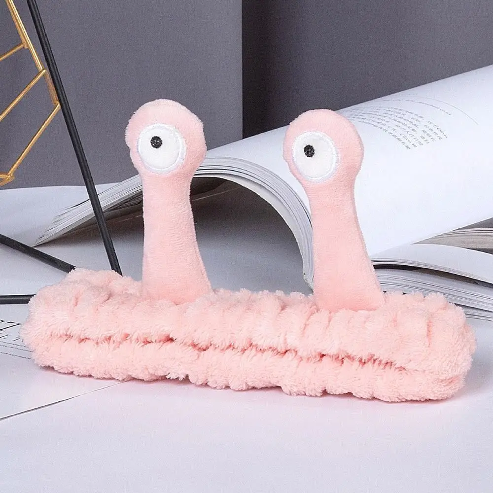 Fascia per capelli da donna in pile di corallo, cartone animato, lumaca, trucco, fascia elastica per capelli spa, cura della pelle, lavaggio del viso, fascia per capelli da donna