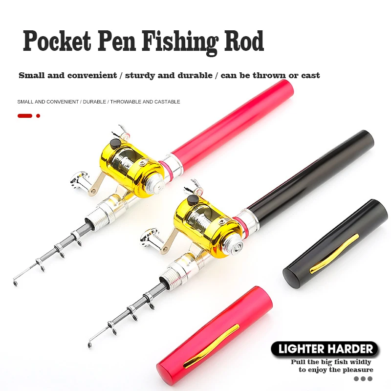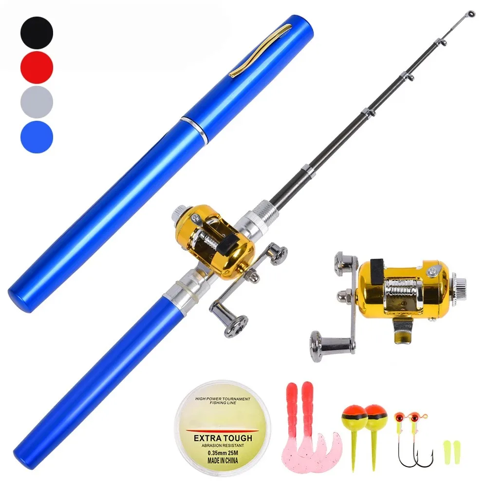 Mini penna telescopica canna da pesca mulinello set combinato canna da pesca tascabile portatile in lega di alluminio con linea esche morbide pesca all'aperto