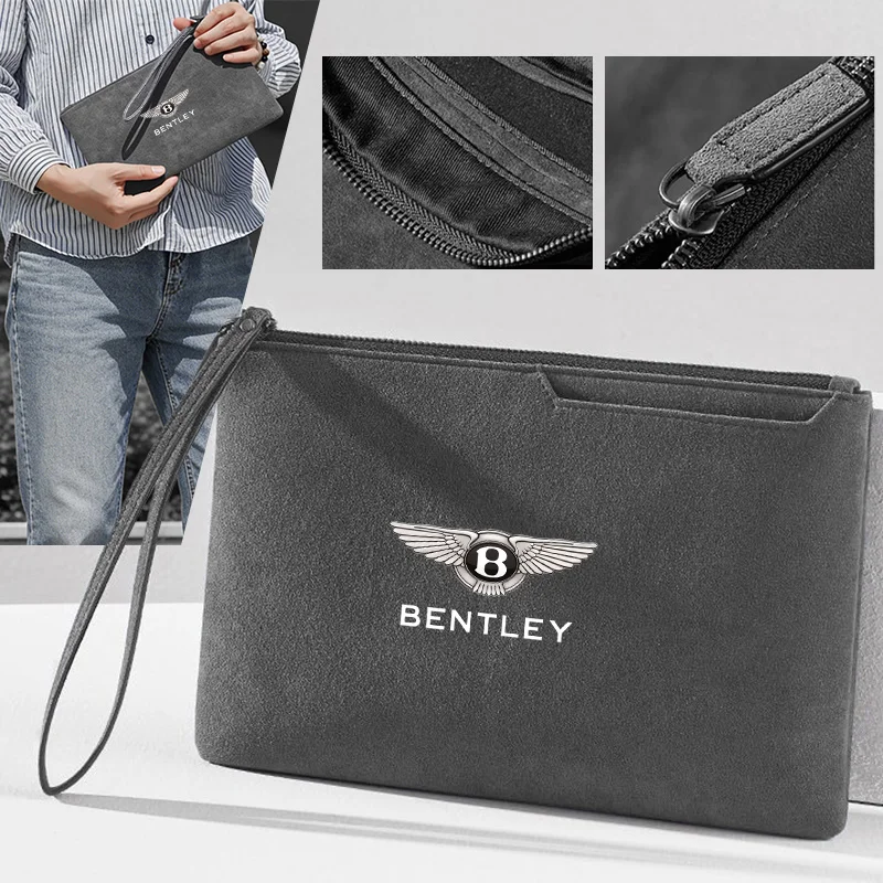 Portafoglio in pelle scamosciata con cerniera, porta carte di credito e portamonete per la nuova Bentley Continental GT MULLINER, Bentayga, Flying, Hurtling, Spur