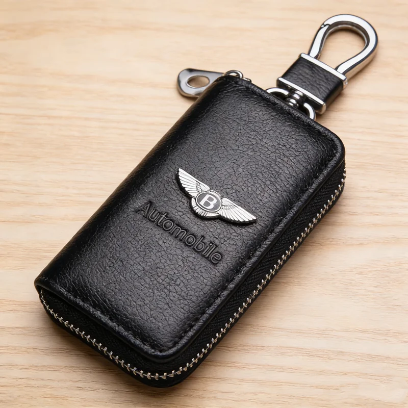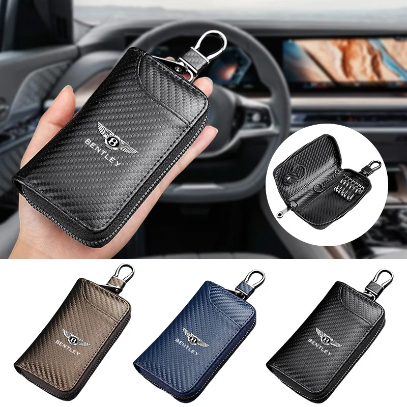 Portachiavi in Pelle con Logo Auto, Custodia Multifunzione con Cerniera per Bentley Flying Spur, Continental GT, Bentayga, Mulsanne