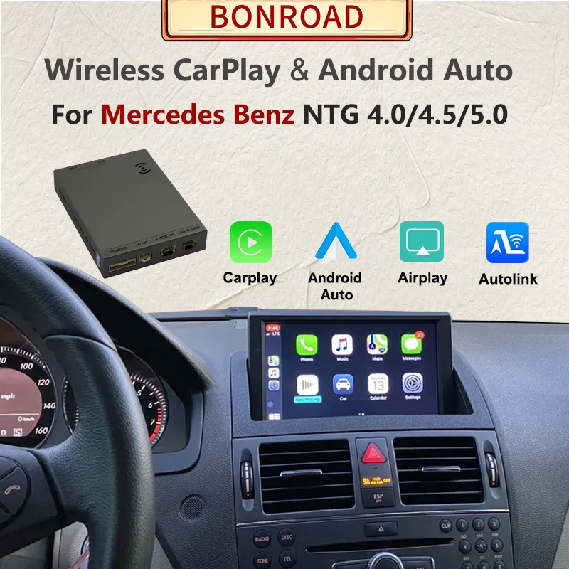 Decodificatore automatico Android CarPlay wireless per mercodi Benz C W204 GLC GLK W205 W176 W212 NTG4.0/4.5/5.0 Sistema Modulo auto Airplay