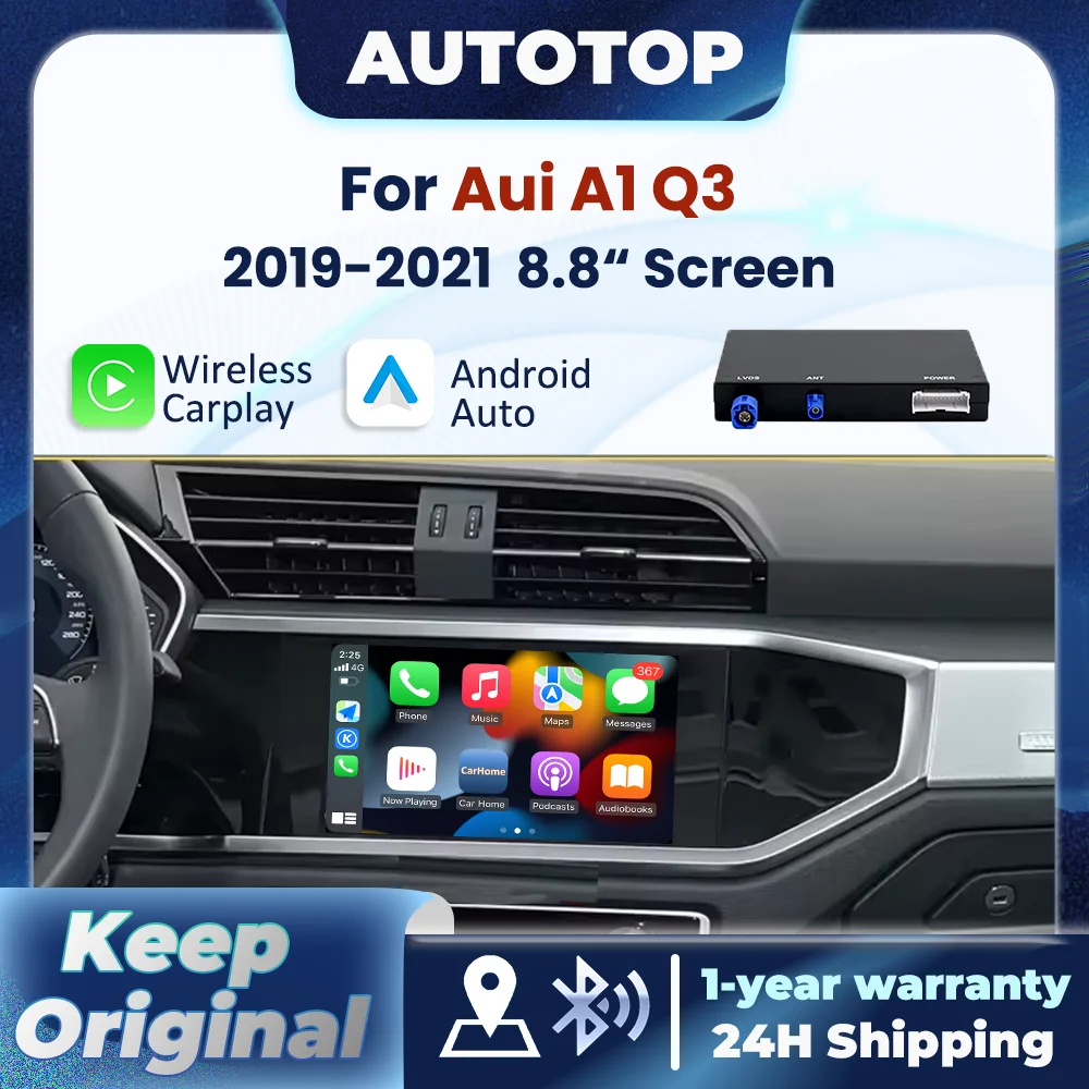 Decodificatore automatico Android CarPlay wireless per Audi A1 Q3 con schermo da 8,8 "2019 2020 2021 BT Mirror Link AirPlay GPS AUX modulo auto