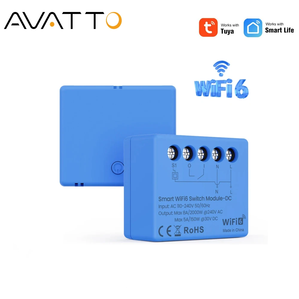 Modulo interruttore a contatto secco AVATTO WiFi6, modulo ultra mini intelligente, supporto controllo bidirezionale, funziona per Alexa Google Home.