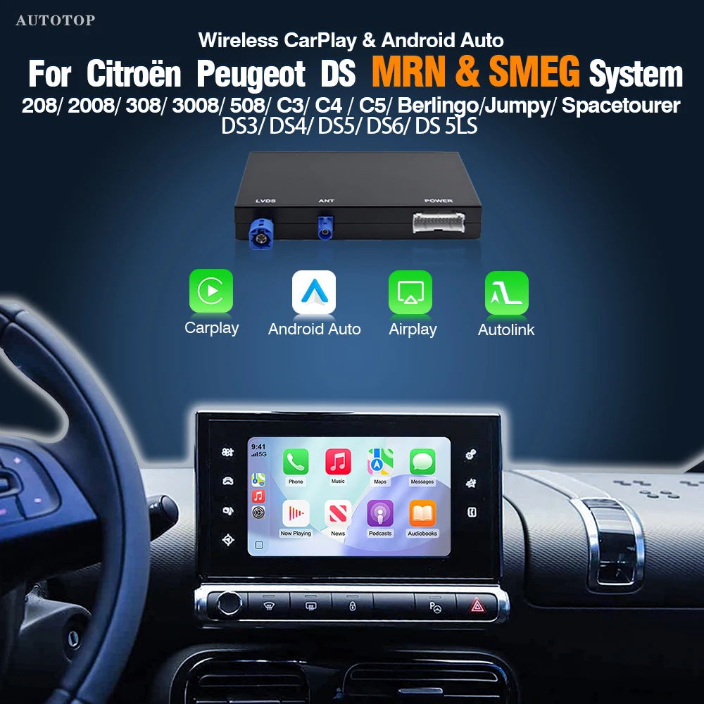 Modulo Wireless Carplay e Android Auto AUTOTOP per Peugeot 208 308 508 3008 C3 C4 C5 DS3 DS4 DS5 DS6 SMEG Airplay Mirror Link