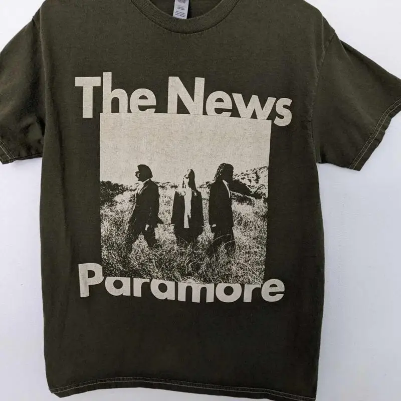 Paramore The News Tour T-shirt da uomo grigia media Band Emo Pop Punk Alt Rock
