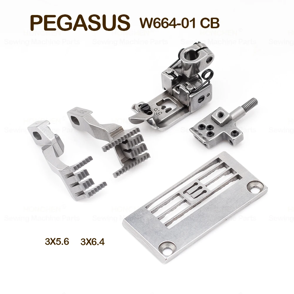 Set di calibri per macchina interlock a 2-3 aghi PEGASUS W664-01 CB, piastra gola 257018B56, piedino pressore con morsetto ago 257461-56