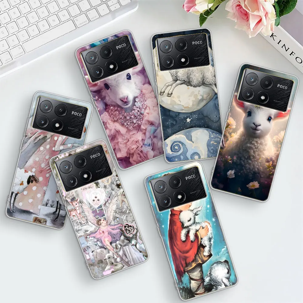 Carino Piccolo Agnello Angelo Pecora Caso per Xiaomi Poco M4 F1 X6 X7 M5 X4 GT X5 M5s F5 F4 X3 NFC M3 F3 F2 Pro TPU Trasparente Copertura Del Telefono