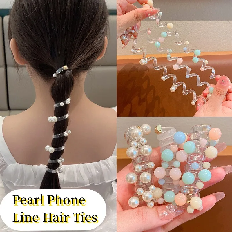 Cavo telefonico Fascetta per capelli Perle colorate Perline di colore trasparente Filo telefonico Fascia elastica per capelli Porta coda di cavallo Accessori donna