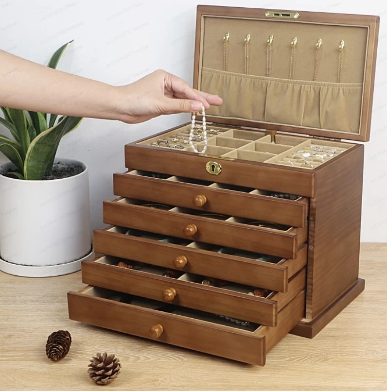 Portagioie grande in legno con cassetti Portagioie di lusso Organizzatore Stile retrò Espositore a sei strati Forniture per confezioni regalo