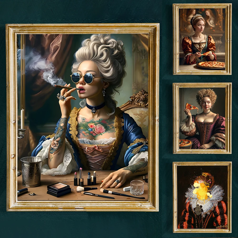 Francese Rococò Tattoo Altered Art Stampa Wall Art Barocco Tela Pittura Vintage Pizza Rinascimentale Art Poster Sala da pranzo Decor
