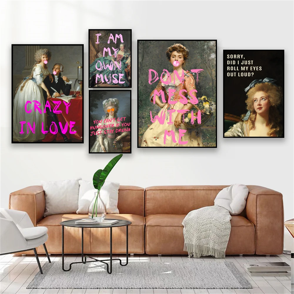 Retro divertente Poster d'arte modificato ritratto Vintage stampa citazione rosa pittura su tela rococò barocco Poster galleria Home Wall Decor