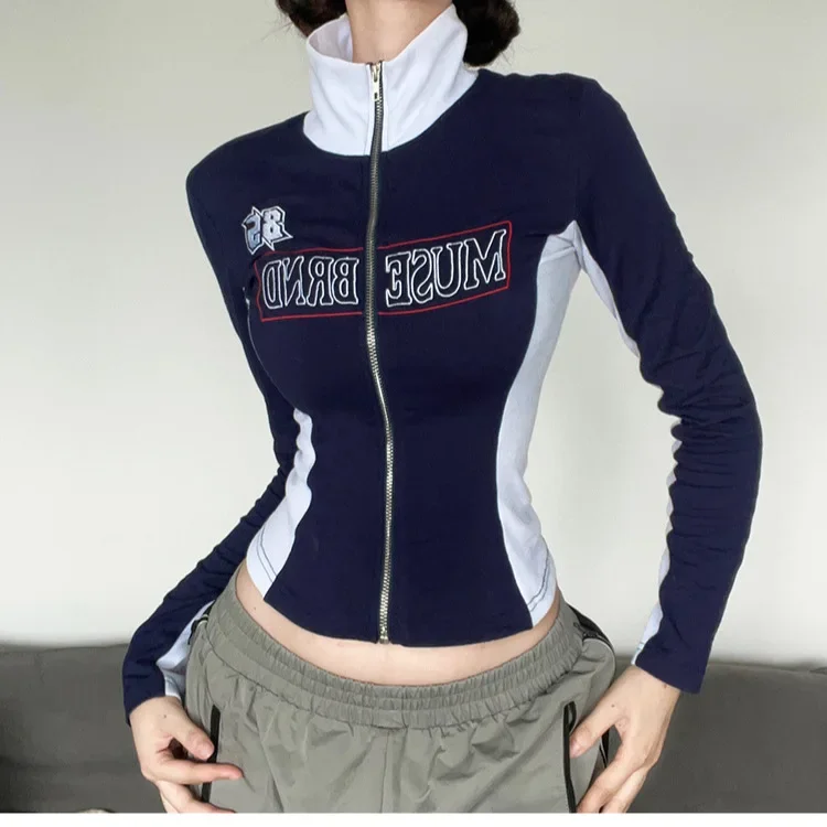 Giacca da donna con cerniera con stampa di lettere con blocco fresco americano stile casual vintage per donna che dimagrisce versatile top corto liscia il tuo Silho