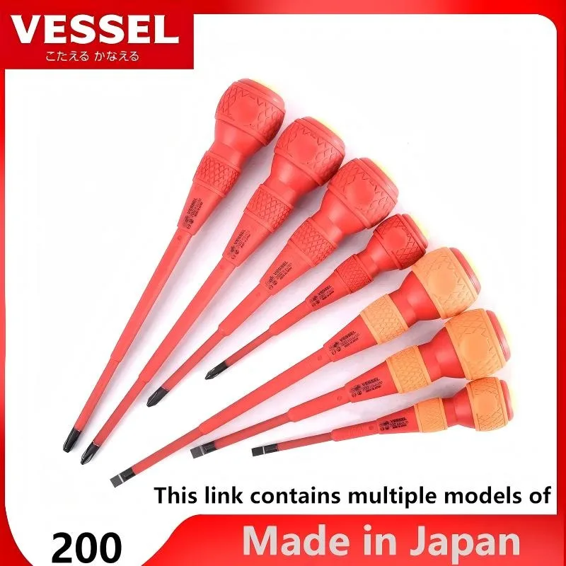 VESSEL 200 JIS Cacciavite isolato, serie di cacciaviti a taglio Phillips con manico a sfera per riparazione da elettricista VDE 1000v