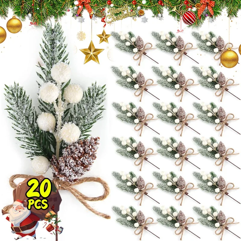 20 pezzi di aghi di pino artificiale di Natale rami steli di pino finto verde ghirlanda fai da te decorazione per feste a casa regali di Natale Capodanno