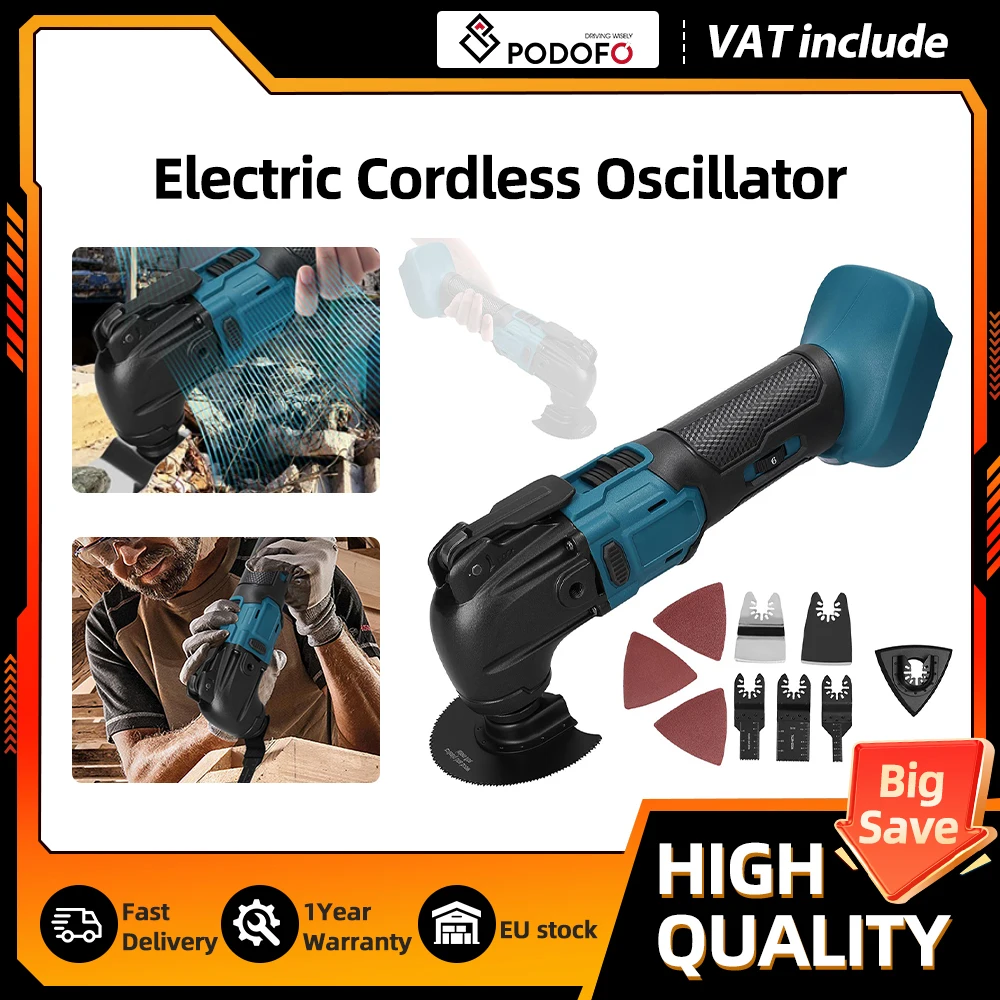 Kit Utensile Oscillante a Batteria Podofo con Accessori, 6 Velocità Variabili 20000RPM per Taglio Legno, Chiodatura, Raschiatura, Levigatura