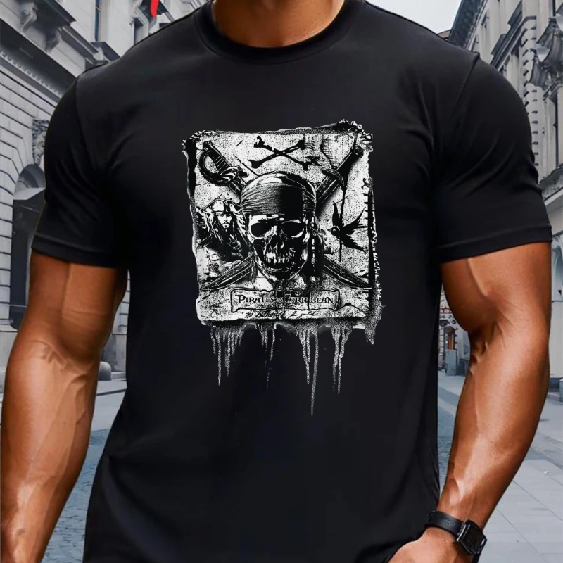 T-shirt girocollo da uomo estiva Disney Pirate Caribi Sea Jack Sparrow Captain Skull Flag - T-shirt ufficiale con grafica pirata