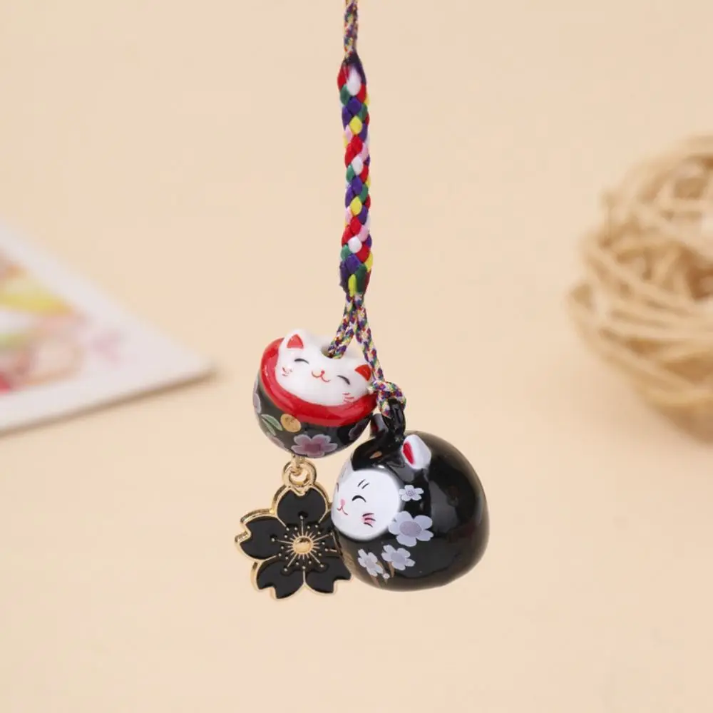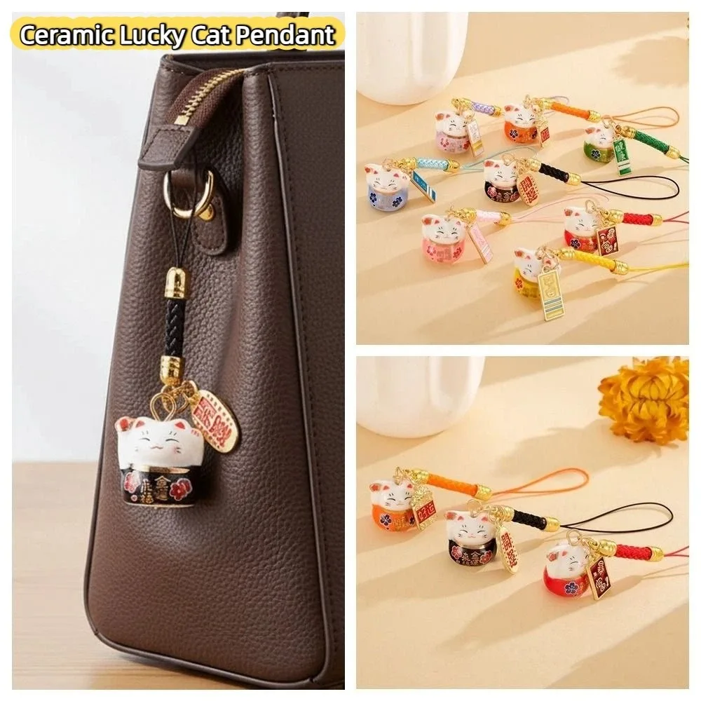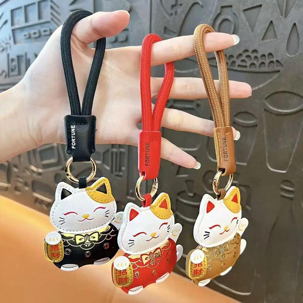 Ciondolo in stile cinese Portachiavi con gatto fortunato Ciondolo per auto Cordino corto Portachiavi con cinturino intrecciato a mano Maneki Neko Ciondolo da donna