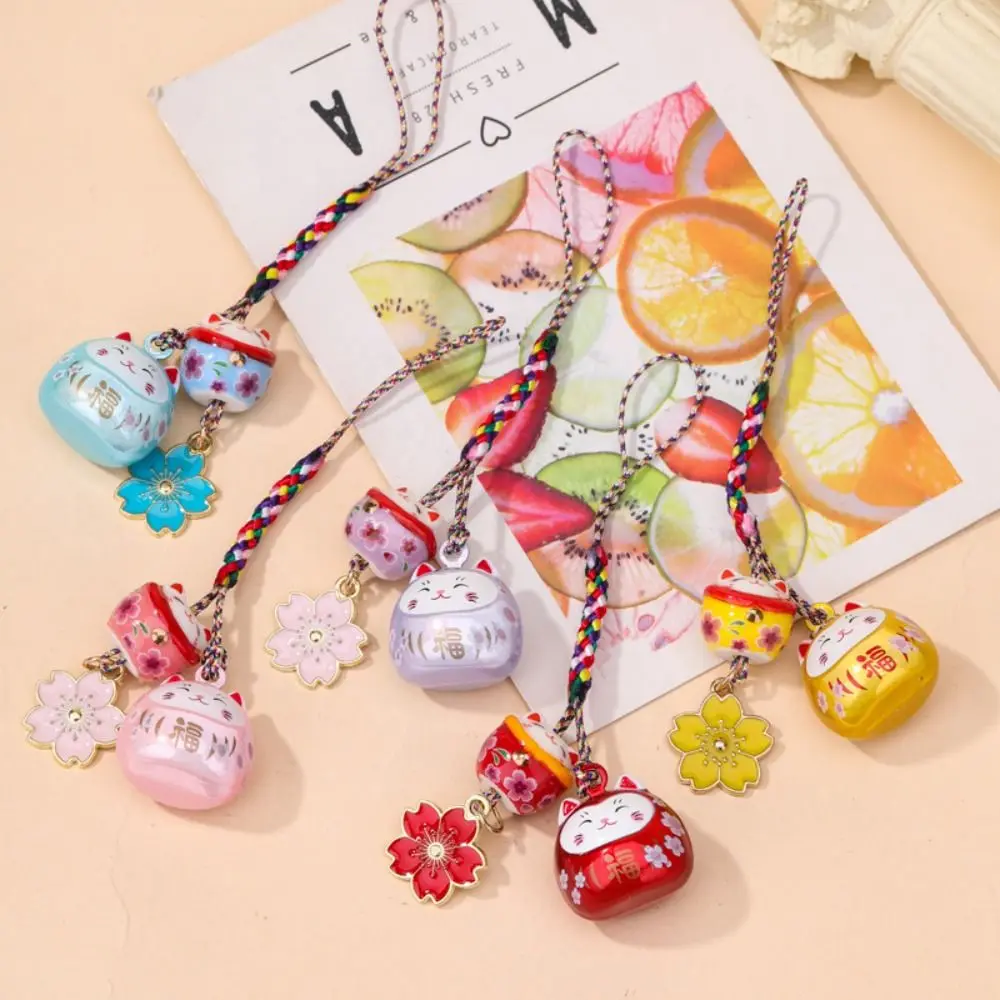 Gioielli artigianali Fortuna Ricchezza Ciondolo per telefono Campane d'acqua rosse Maneki Neko Campane Portachiavi con ciondolo Giappone Daruma Portachiavi gatto fortunato