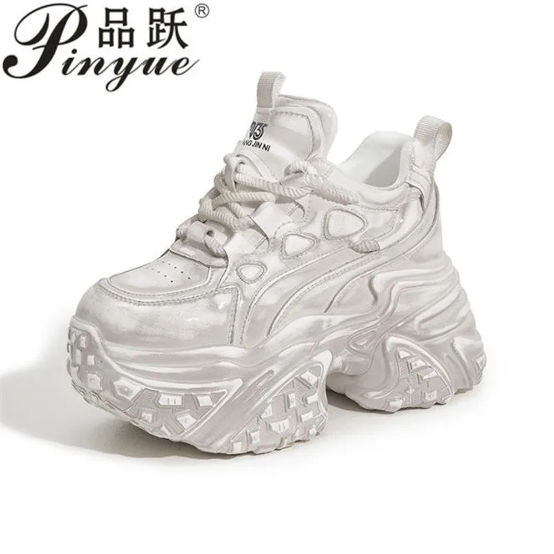 Scarpe da ginnastica da donna Scarpe da ginnastica casual con plateau Scarpe bianche Tacchi da 8 cm Zeppe autunnali Scarpe da donna traspiranti con altezza crescente