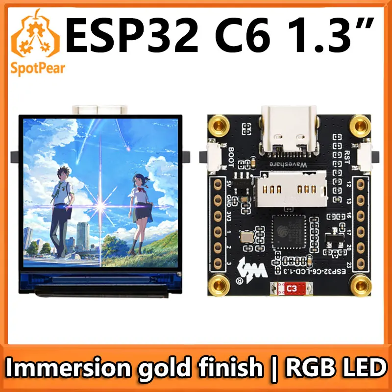 Scheda di sviluppo LCD ESP32-C6 Display da 1,3 pollici Schermo da 1,3 pollici ST7789 240x240 Mini TV SD-Port QST LVGL per Arduino