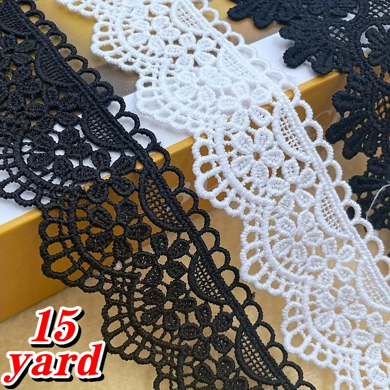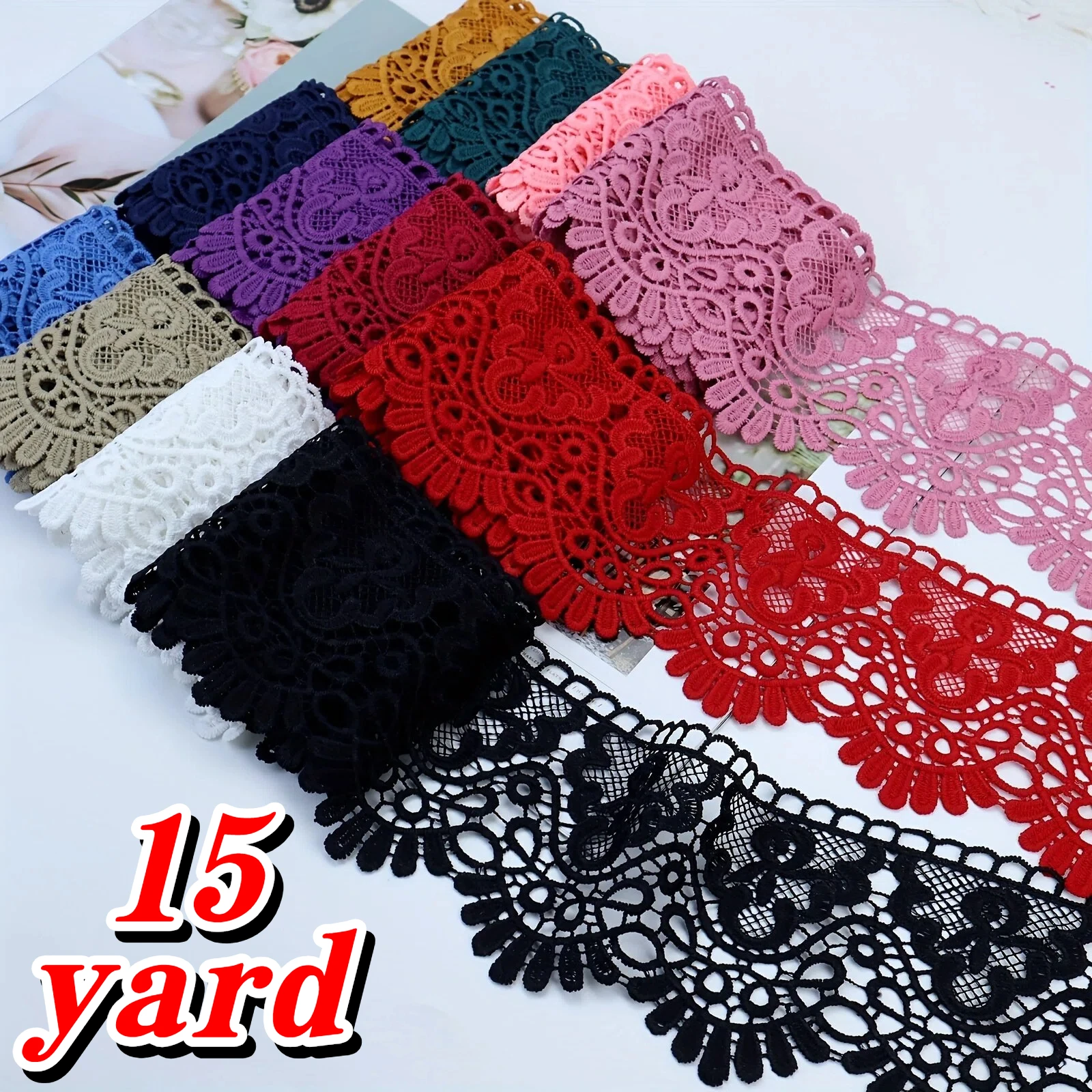 15 metri di squisito pizzo ricamato floreale europeo, larghezza 1,5 pollici -15/10/5/1 iarde, adatto per cuscini del divano, decorazione del cuscino, scollatura, gonna da letto, federa, runner da tavolo, paralume, decorazione della tenda,