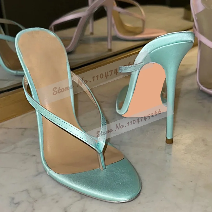 Ciabatte con tacco alto in raso verde chiaro con punta a clip Tacchi a spillo Pantofole moderne esterne Infradito slip-on Scarpe eleganti estive Rosa