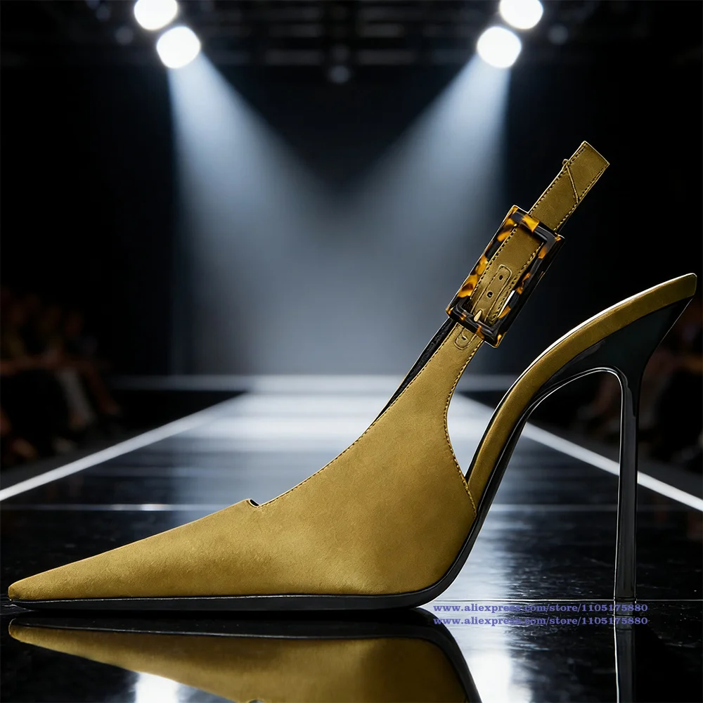Sandali con tacco a spillo in raso verde oliva Sandali con punta a punta Cinturino con fibbia alla caviglia Décolleté da donna Designer di lusso Sandalias De Mujer Verano