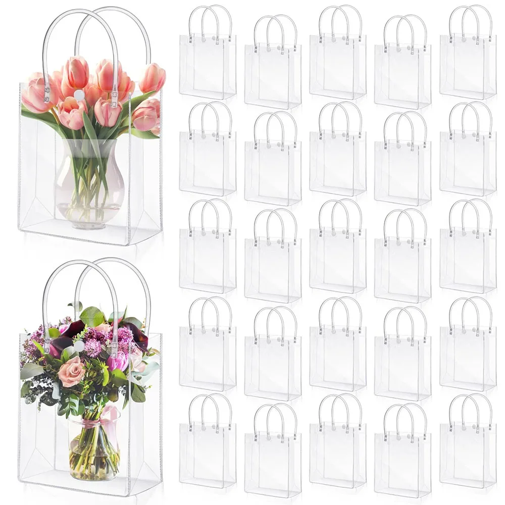 10/20 pezzi sacchetto regalo trasparente con manico matrimonio festa di compleanno regali di caramelle imballaggio sacchetti di stoffa riutilizzabili baby shower di Natale